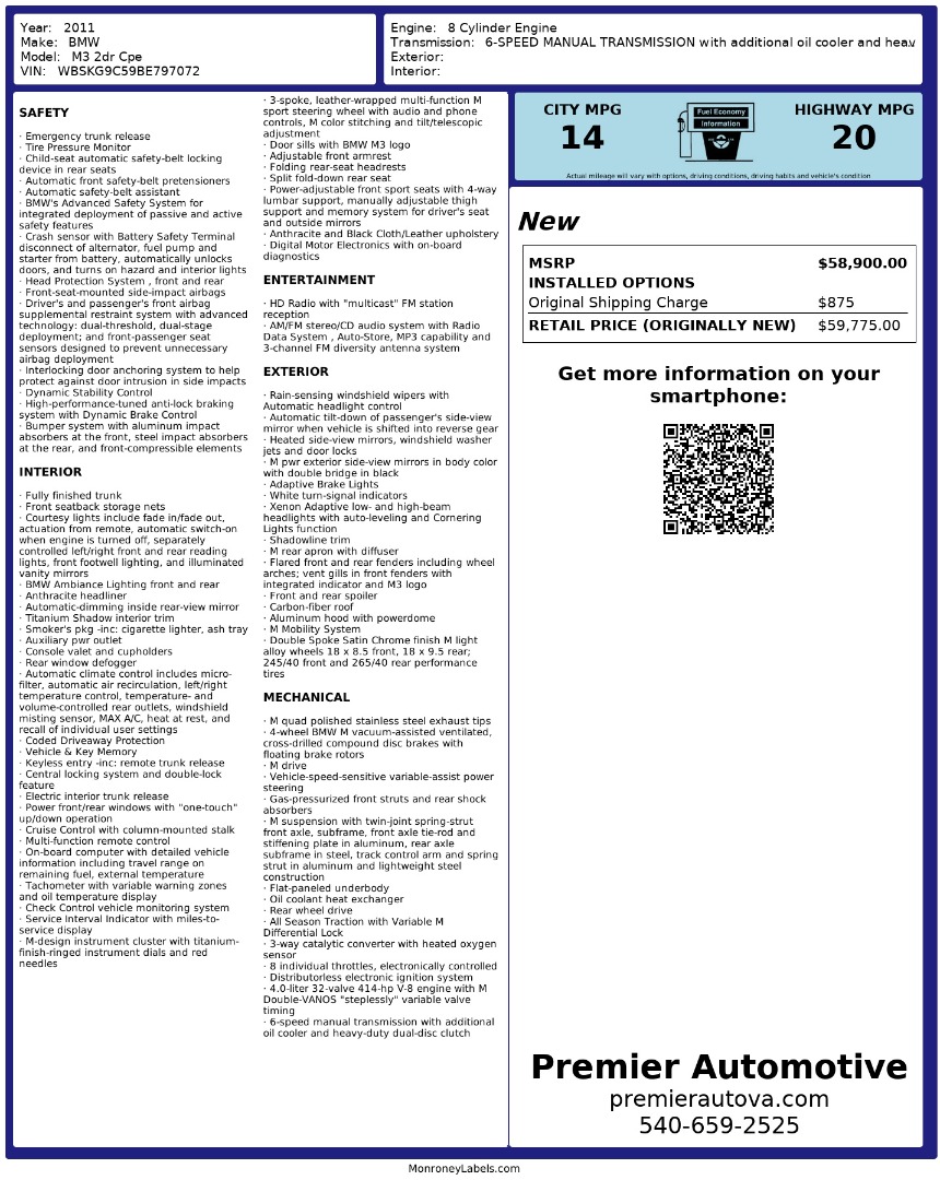 • At Premier Automotive Inc., one of the largest pre-owned car dealerships in the DMV area, we proudly offer over 300 vehicles in stock, providing a wide selection for our customers. While we strive to provide accurate vehicle information, some details—including window sticker features and vehicle history—may be sourced from third-party providers such as Monroney Labels, auctions, and vehicle data services. Because of this, customers are responsible for verifying all details prior to purchase. We strongly recommend contacting us directly to confirm vehicle specifications, features, and availability.