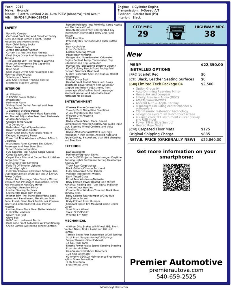 • At Premier Automotive Inc., one of the largest pre-owned car dealerships in the DMV area, we proudly offer over 300 vehicles in stock, providing a wide selection for our customers. While we strive to provide accurate vehicle information, some details—including window sticker features and vehicle history—may be sourced from third-party providers such as Monroney Labels, auctions, and vehicle data services. Because of this, customers are responsible for verifying all details prior to purchase. We strongly recommend contacting us directly to confirm vehicle specifications, features, and availability.
