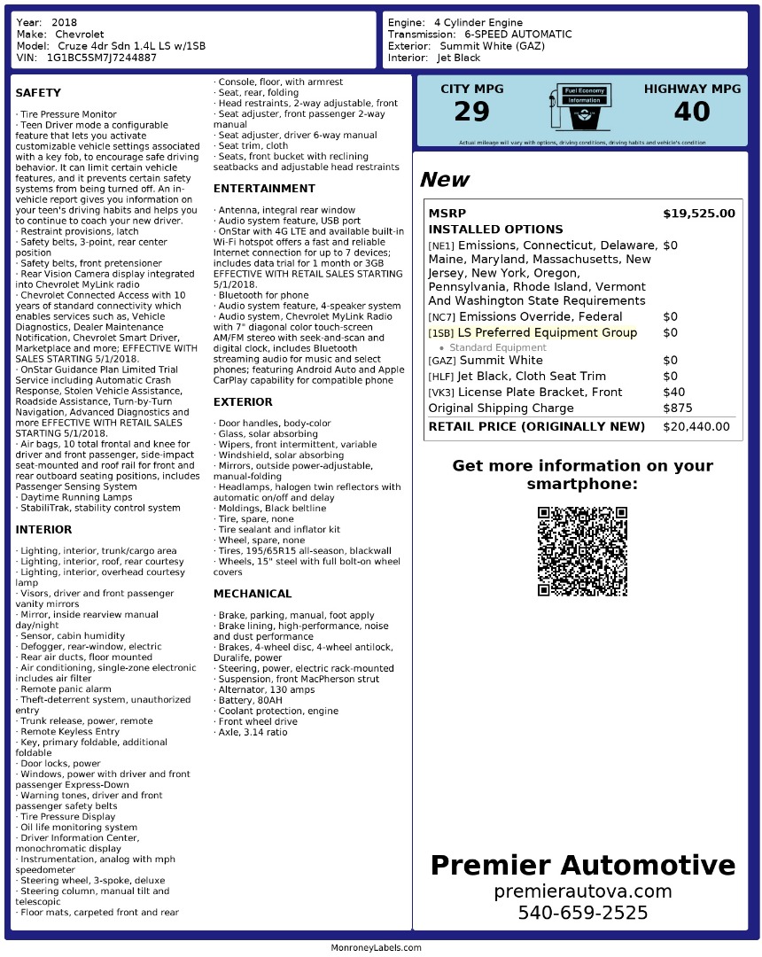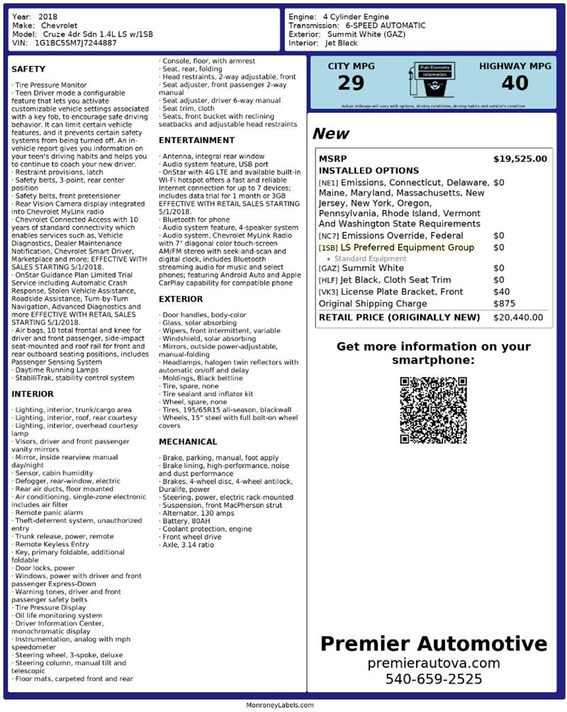 • At Premier Automotive Inc., one of the largest pre-owned car dealerships in the DMV area, we proudly offer over 300 vehicles in stock, providing a wide selection for our customers. While we strive to provide accurate vehicle information, some details—including window sticker features and vehicle history—may be sourced from third-party providers such as Monroney Labels, auctions, and vehicle data services. Because of this, customers are responsible for verifying all details prior to purchase. We strongly recommend contacting us directly to confirm vehicle specifications, features, and availability.