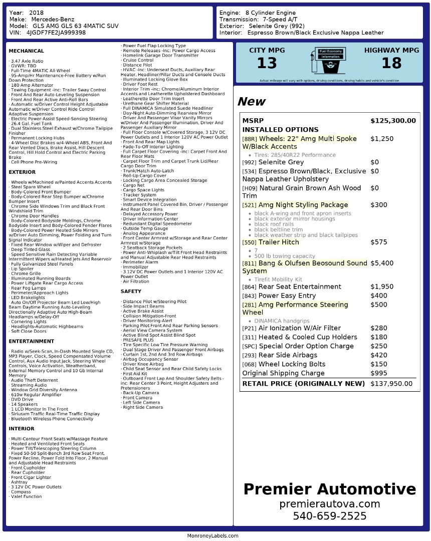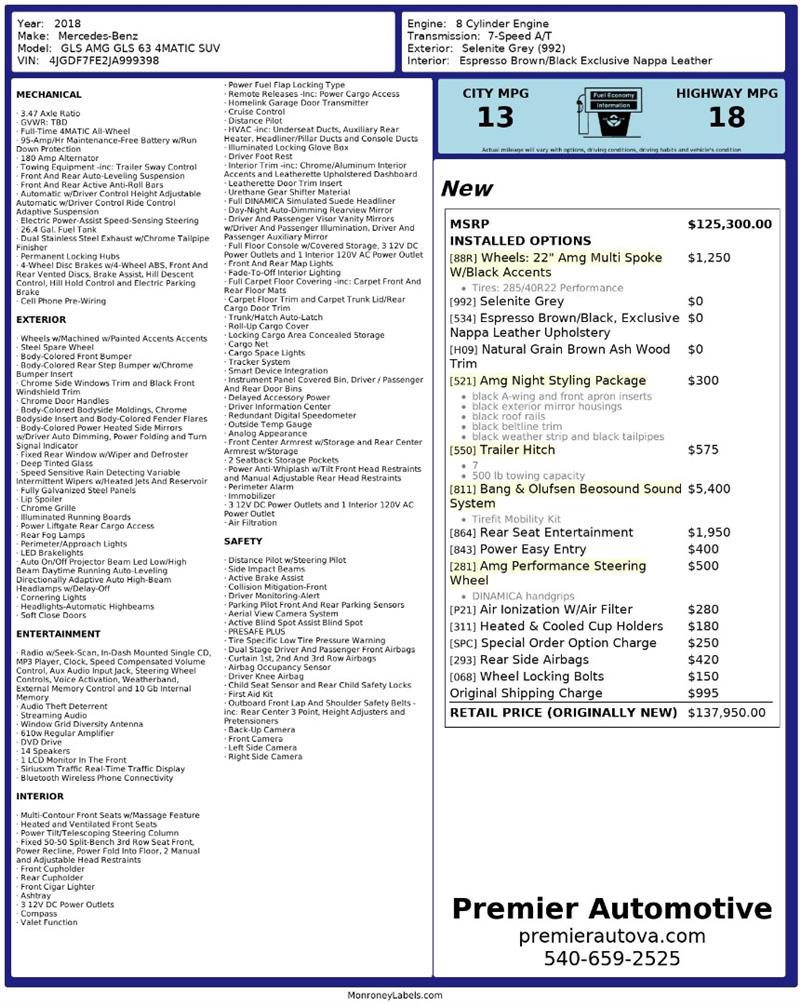 • At Premier Automotive Inc., one of the largest pre-owned car dealerships in the DMV area, we proudly offer over 300 vehicles in stock, providing a wide selection for our customers. While we strive to provide accurate vehicle information, some details—including window sticker features and vehicle history—may be sourced from third-party providers such as Monroney Labels, auctions, and vehicle data services. Because of this, customers are responsible for verifying all details prior to purchase. We strongly recommend contacting us directly to confirm vehicle specifications, features, and availability.