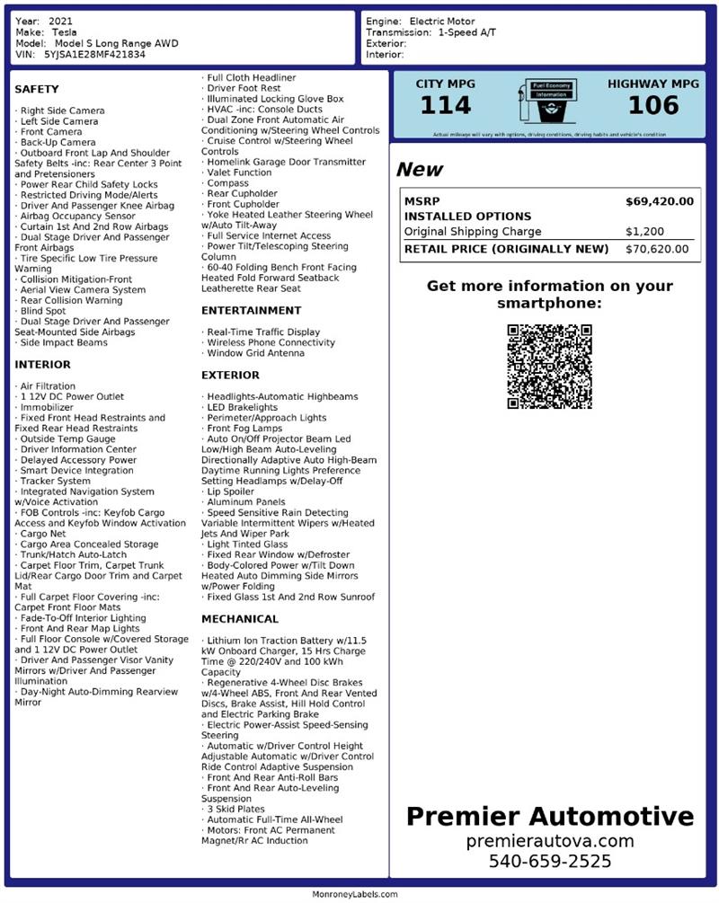 • At Premier Automotive Inc., one of the largest pre-owned car dealerships in the DMV area, we proudly offer over 300 vehicles in stock, providing a wide selection for our customers. While we strive to provide accurate vehicle information, some details—including window sticker features and vehicle history—may be sourced from third-party providers such as Monroney Labels, auctions, and vehicle data services. Because of this, customers are responsible for verifying all details prior to purchase. We strongly recommend contacting us directly to confirm vehicle specifications, features, and availability.
