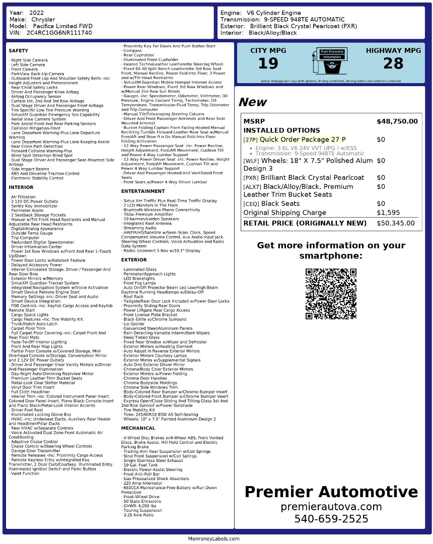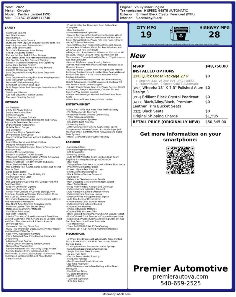 • At Premier Automotive Inc., one of the largest pre-owned car dealerships in the DMV area, we proudly offer over 300 vehicles in stock, providing a wide selection for our customers. While we strive to provide accurate vehicle information, some details—including window sticker features and vehicle history—may be sourced from third-party providers such as Monroney Labels, auctions, and vehicle data services. Because of this, customers are responsible for verifying all details prior to purchase. We strongly recommend contacting us directly to confirm vehicle specifications, features, and availability.
