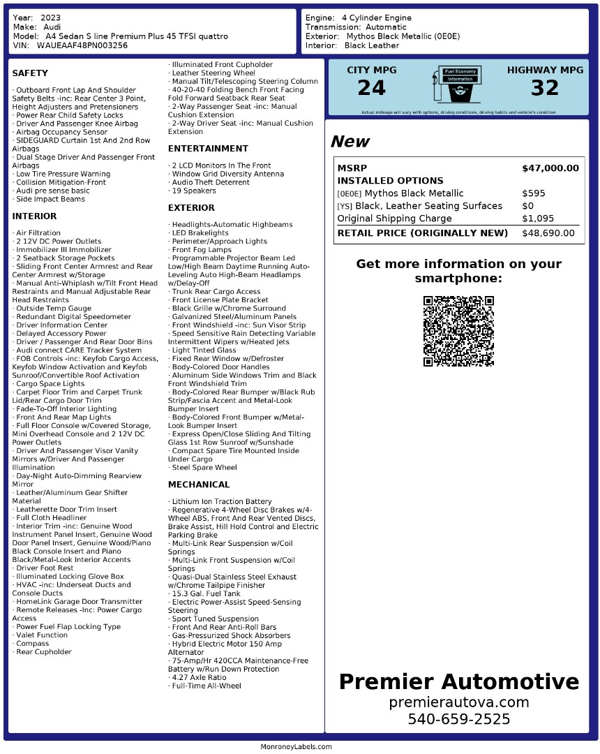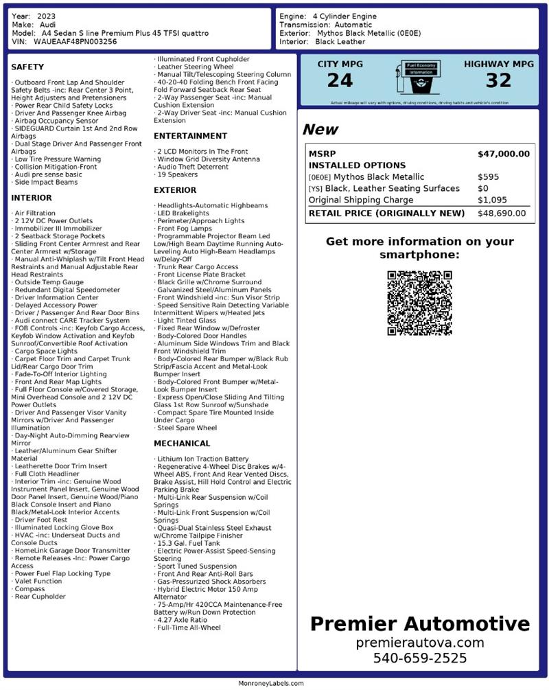 • At Premier Automotive Inc., one of the largest pre-owned car dealerships in the DMV area, we proudly offer over 300 vehicles in stock, providing a wide selection for our customers. While we strive to provide accurate vehicle information, some details—including window sticker features and vehicle history—may be sourced from third-party providers such as Monroney Labels, auctions, and vehicle data services. Because of this, customers are responsible for verifying all details prior to purchase. We strongly recommend contacting us directly to confirm vehicle specifications, features, and availability.