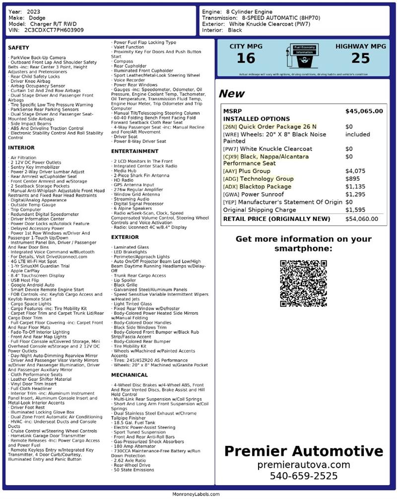 • At Premier Automotive Inc., one of the largest pre-owned car dealerships in the DMV area, we proudly offer over 300 vehicles in stock, providing a wide selection for our customers. While we strive to provide accurate vehicle information, some details—including window sticker features and vehicle history—may be sourced from third-party providers such as Monroney Labels, auctions, and vehicle data services. Because of this, customers are responsible for verifying all details prior to purchase. We strongly recommend contacting us directly to confirm vehicle specifications, features, and availability.
