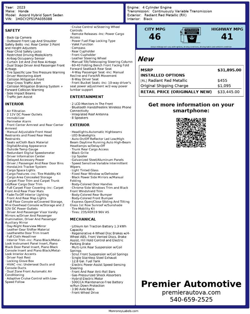 • At Premier Automotive Inc., one of the largest pre-owned car dealerships in the DMV area, we proudly offer over 300 vehicles in stock, providing a wide selection for our customers. While we strive to provide accurate vehicle information, some details—including window sticker features and vehicle history—may be sourced from third-party providers such as Monroney Labels, auctions, and vehicle data services. Because of this, customers are responsible for verifying all details prior to purchase. We strongly recommend contacting us directly to confirm vehicle specifications, features, and availability.