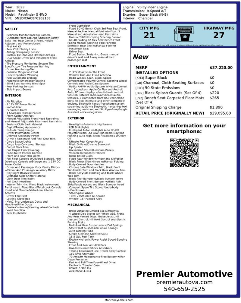 • At Premier Automotive Inc., one of the largest pre-owned car dealerships in the DMV area, we proudly offer over 300 vehicles in stock, providing a wide selection for our customers. While we strive to provide accurate vehicle information, some details—including window sticker features and vehicle history—may be sourced from third-party providers such as Monroney Labels, auctions, and vehicle data services. Because of this, customers are responsible for verifying all details prior to purchase. We strongly recommend contacting us directly to confirm vehicle specifications, features, and availability.