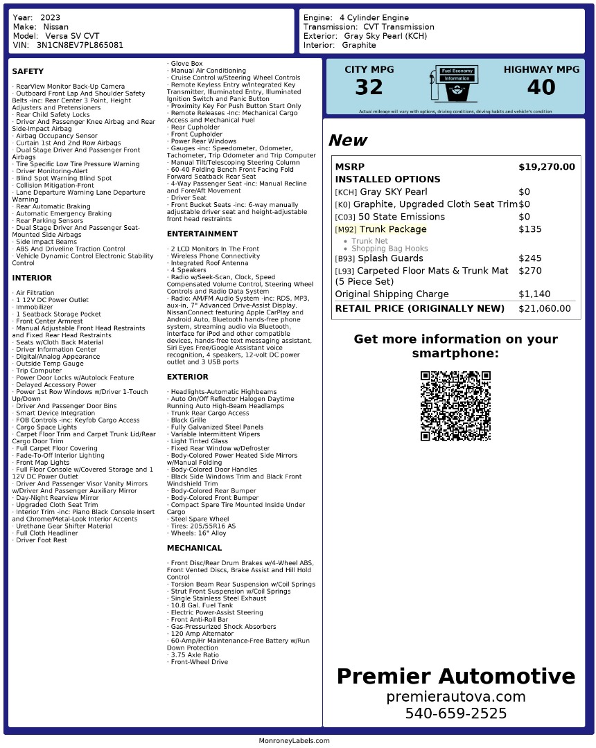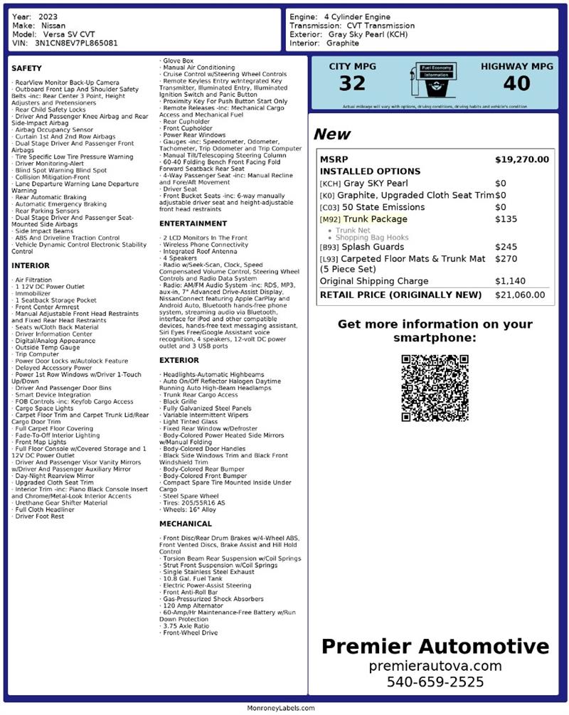 • At Premier Automotive Inc., one of the largest pre-owned car dealerships in the DMV area, we proudly offer over 300 vehicles in stock, providing a wide selection for our customers. While we strive to provide accurate vehicle information, some details—including window sticker features and vehicle history—may be sourced from third-party providers such as Monroney Labels, auctions, and vehicle data services. Because of this, customers are responsible for verifying all details prior to purchase. We strongly recommend contacting us directly to confirm vehicle specifications, features, and availability.