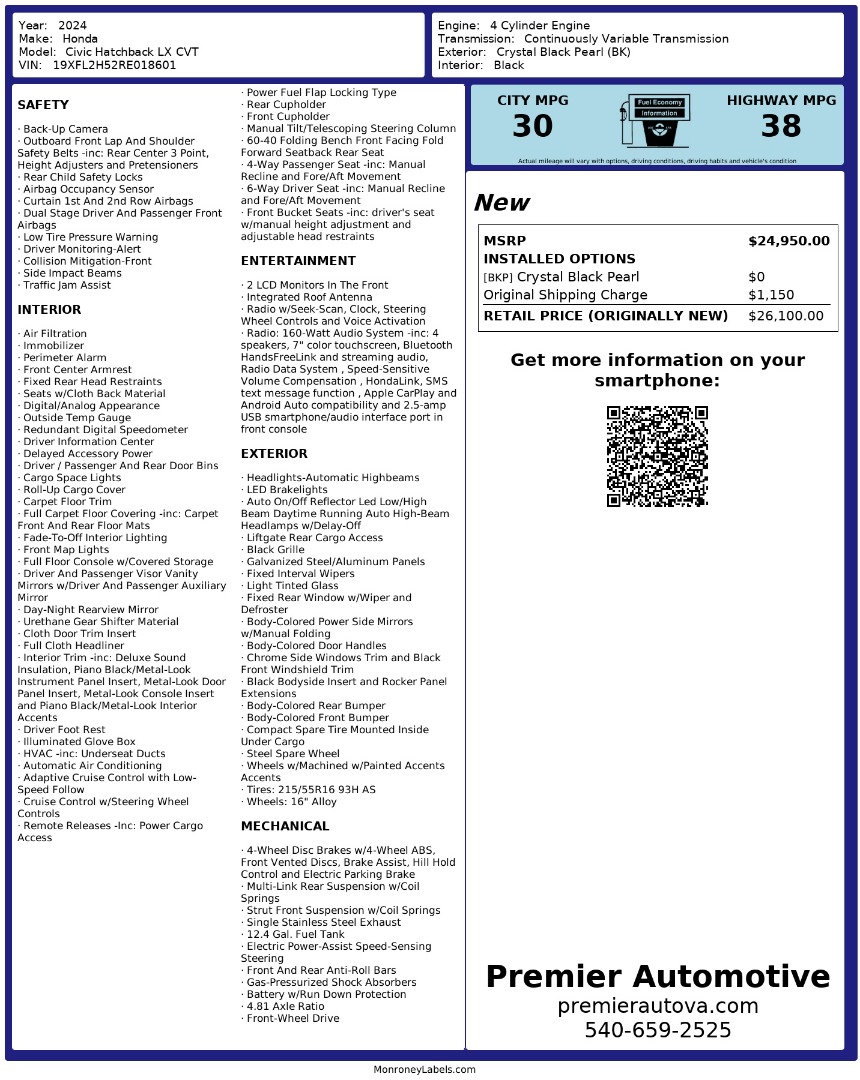 • At Premier Automotive Inc., one of the largest pre-owned car dealerships in the DMV area, we proudly offer over 300 vehicles in stock, providing a wide selection for our customers. While we strive to provide accurate vehicle information, some details—including window sticker features and vehicle history—may be sourced from third-party providers such as Monroney Labels, auctions, and vehicle data services. Because of this, customers are responsible for verifying all details prior to purchase. We strongly recommend contacting us directly to confirm vehicle specifications, features, and availability.