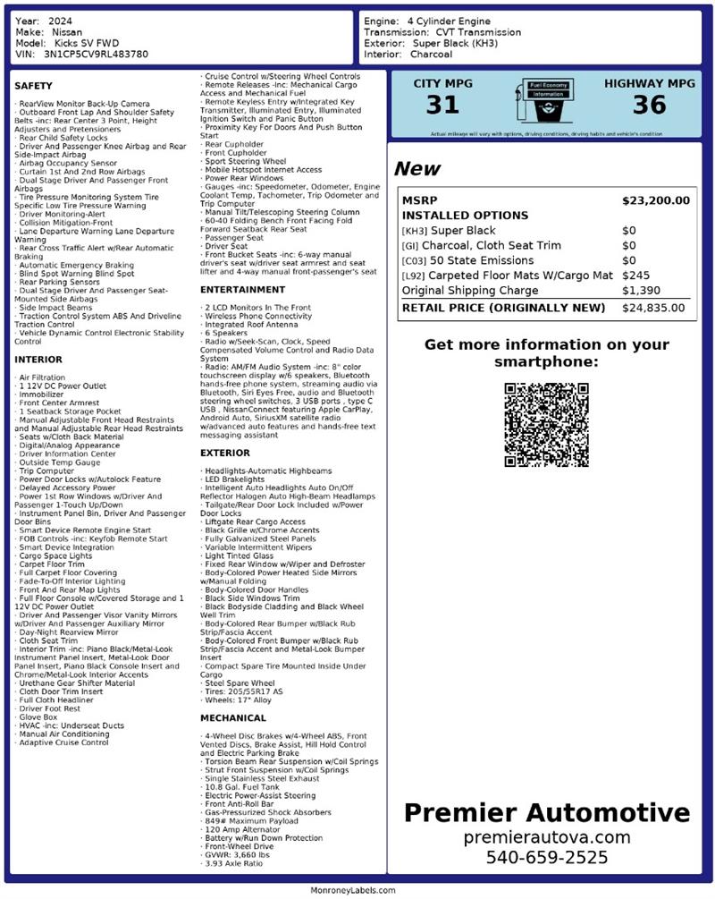 • At Premier Automotive Inc., one of the largest pre-owned car dealerships in the DMV area, we proudly offer over 300 vehicles in stock, providing a wide selection for our customers. While we strive to provide accurate vehicle information, some details—including window sticker features and vehicle history—may be sourced from third-party providers such as Monroney Labels, auctions, and vehicle data services. Because of this, customers are responsible for verifying all details prior to purchase. We strongly recommend contacting us directly to confirm vehicle specifications, features, and availability.