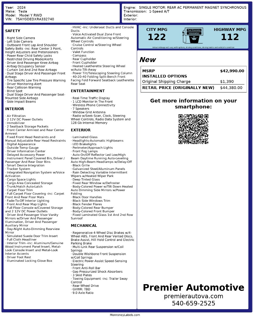 • At Premier Automotive Inc., one of the largest pre-owned car dealerships in the DMV area, we proudly offer over 300 vehicles in stock, providing a wide selection for our customers. While we strive to provide accurate vehicle information, some details—including window sticker features and vehicle history—may be sourced from third-party providers such as Monroney Labels, auctions, and vehicle data services. Because of this, customers are responsible for verifying all details prior to purchase. We strongly recommend contacting us directly to confirm vehicle specifications, features, and availability.